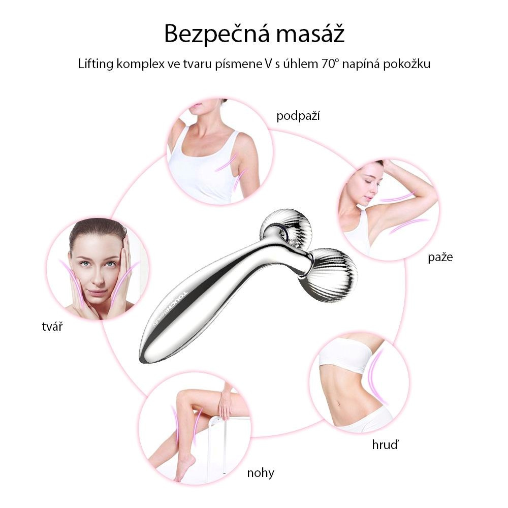 Unikátne valčeky v tvare „V“ sú navrhnuté pre masáž tváre, no rovnako dobre ich využijete na hrudník, ruky či nohy. Ergonomický dizajn zaručuje pohodlné používanie a jednoduché držanie, či už ste doma, alebo na cestách.