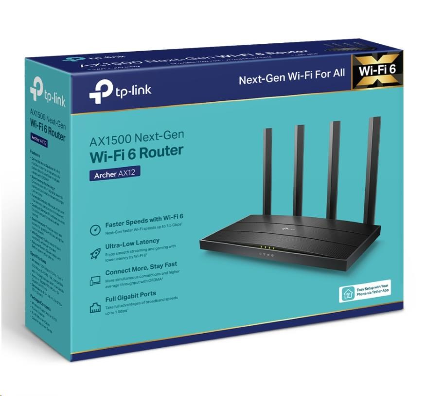 - Zpetná kompatibilita: Archer AX12 podporuje všetky predchádzajúce štandardy 802.11 a všetky WiFi zariadenia.