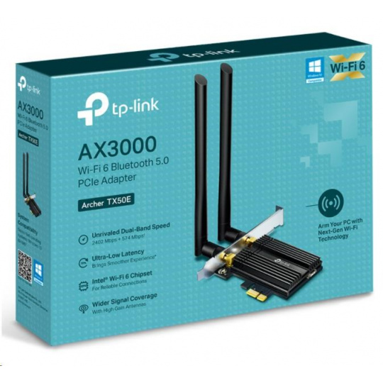 TP-Link Archer TX50E WiFi6 PCIe adapter (AX3000,2,4GHz/5GHz,Bluetooth5.0)