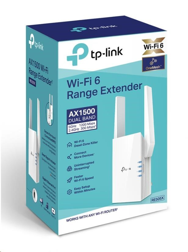 TP-Link RE505X OneMesh/EasyMesh WiFi6 Extender/Repeater (AX1500,2,4GHz/5GHz,1xGbELAN)
