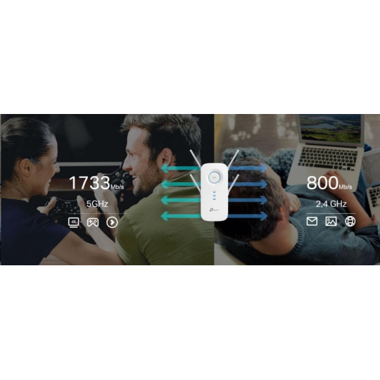 Vďaka štyrom externým dvojpásmovým anténam vytvára extender RE650 stabilné bezdrôtové pripojenie ku ľubovoľnému Wi-Fi routeru a zvyšuje pokrytie siete až o 1300 m2. Dvojjadrový procesor s taktom 880 MHz zabezpečuje pre Wi-Fi maximálny výkon, takže vaše chytré telefóny a tablety budú stále pripojené, aj keď sa budete pohybovať po celom dome.