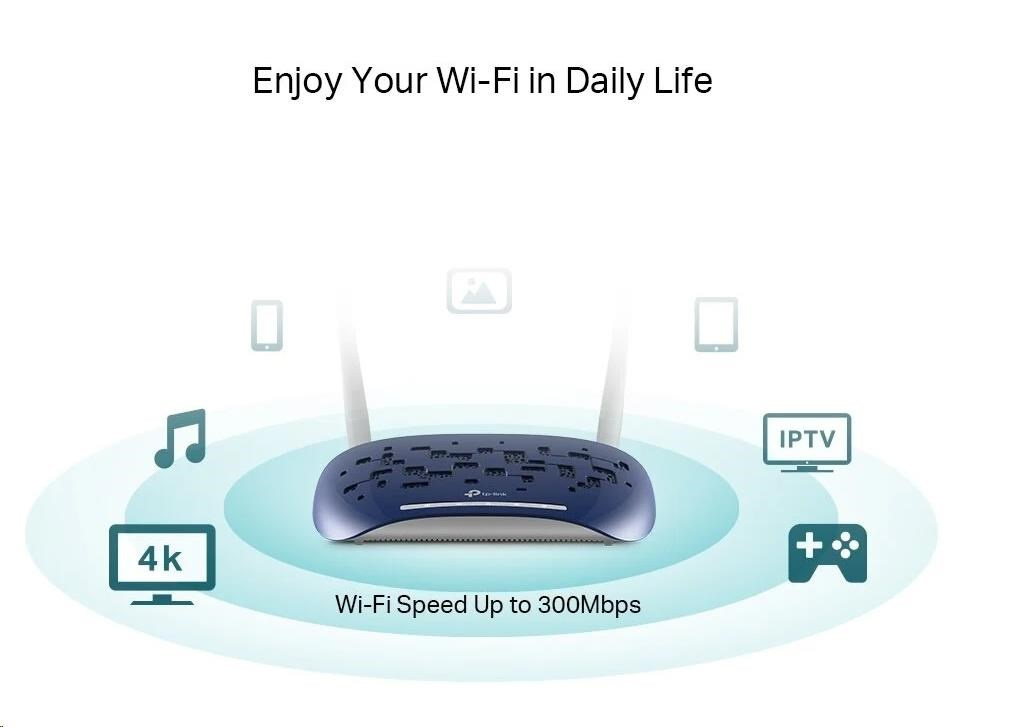 Modem/router TD-W9960 ponúka rýchlosť bezdrôtového prenosu dát v pásme 2,4 GHz až 300 Mb/s a navyše 4 megabitové sieťové porty LAN – je tak dokonalou voľbou pre streamovanie videí v HD rozlíšení a iné aplikácie, ktoré vyžadujú vysoké prenosové rýchlosti.