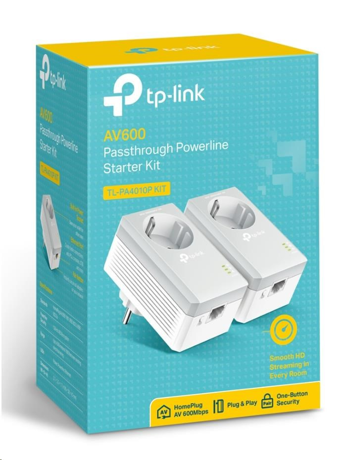 .TP-Link TL-PA4010PKIT průchozí powerline set (AV600, 1x100Mb/s, HomePlug AV)