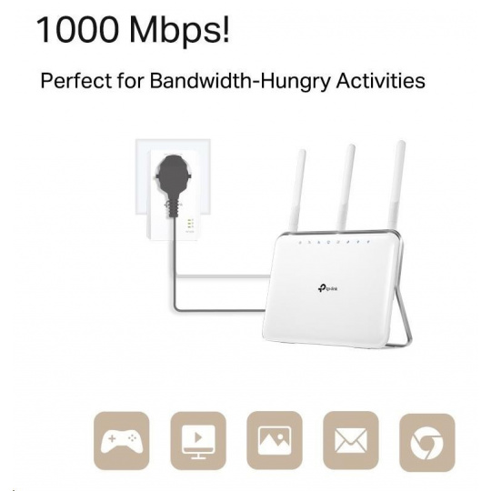 - Standard HomePlug AV2, vysokorýchlostný prenos dát rýchlosťou až 1000Mb/s, podporuje všetky vaše online potreby