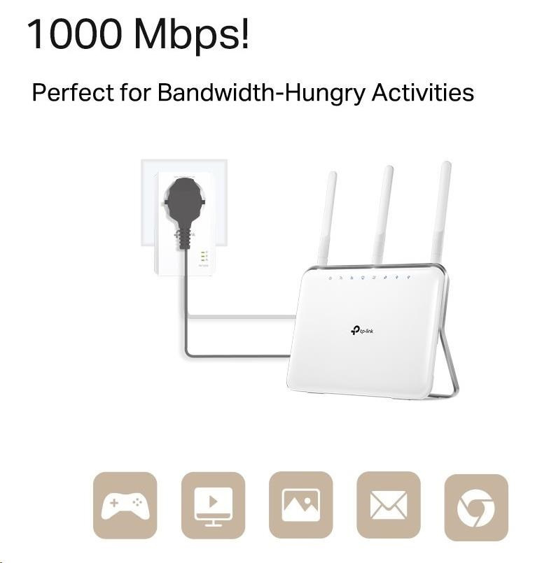 - Standard HomePlug AV2, vysokorýchlostný prenos dát rýchlosťou až 1000Mb/s, podporuje všetky vaše online potreby