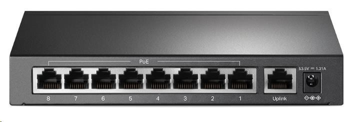 Vyhovuje štandardu 802.3af/at PoE + a podporuje až 30 W napájania na každom PoE portu. Celkový výkon až 65 W pri napájaní cez PoE* pre 8× PoE porty, umožňuje otvoriť široké spektrum aplikácií, ako je dohľad pre kancelárie, internáty a malé podniky. Je plne kompatibilný s IP kamerami, prístupovými bodmi, IP telefónmi, počítačmi, tlačiarňami atď.