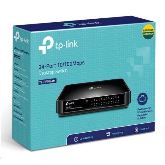 Prepínač TL-SF1024M Fast Ethernet je určený pre malé kancelárie alebo pracovné skupiny. Všetkých 24 portov podporuje funkciu Auto MDI/MDIX, vďaka čomu sa nemáte starosti o správny typ kábla – stačí zapojiť a môžete používať. Navyše s inovatívnou technológiou úspory energie dokáže prepínač TL-SF1024M znížiť spotrebu energie až o 67 %, čím je ekologickým riešením pre vašu podnikovú sieť.