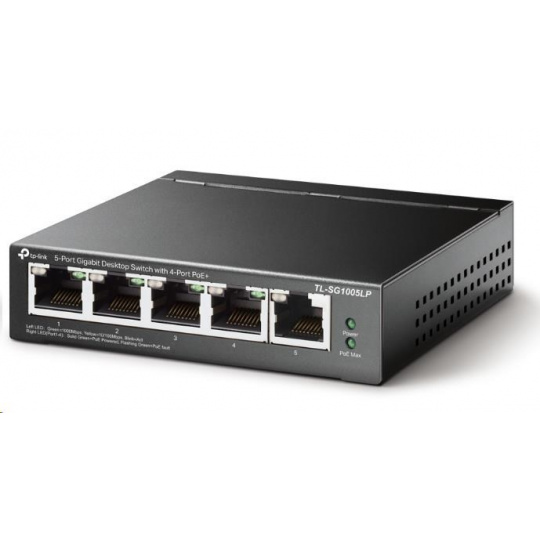TP-Link switch TL-SG1005LP (5xGbE, 4xPoE+, 40W, fanless)