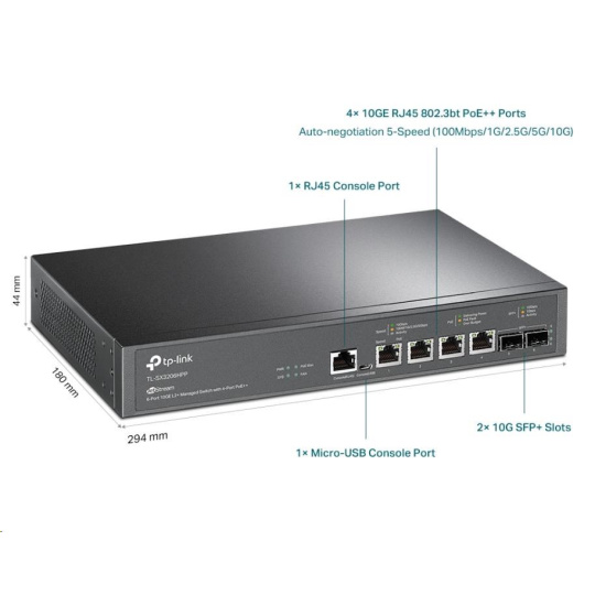 TP-Link OMADA JetStream switch TL-SX3206HPP (4x10GbE, 2xSFP+, 4xPoE++, 200W, 2xconsole)