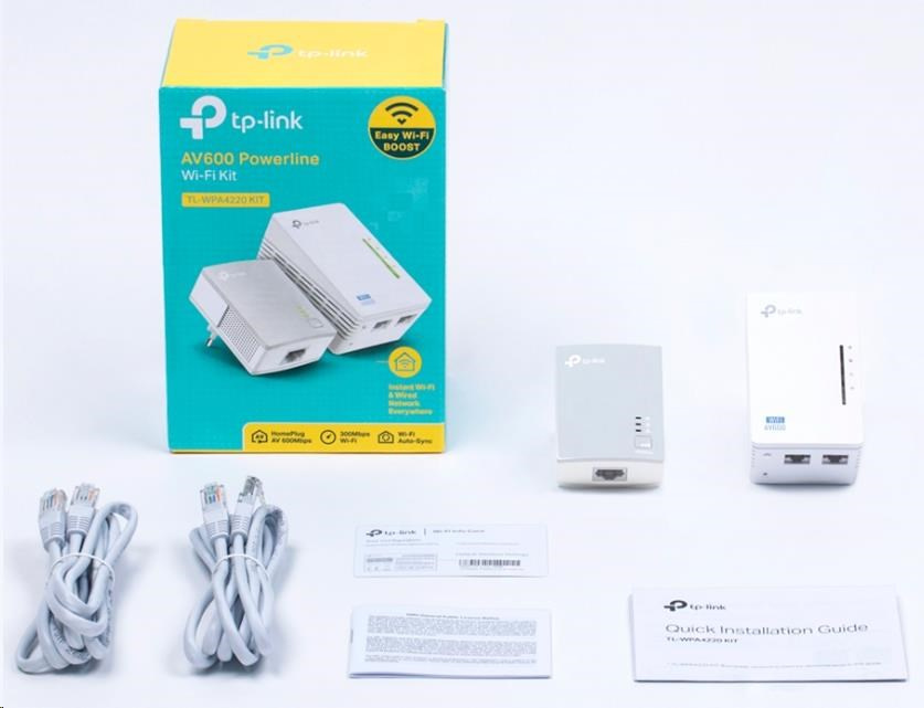 | Obsah balenia | Powerline Ethernet adaptér TL-WPA4220 & TL-PA4010 6,5 ft. (2 m) Ethernetový kábel (RJ45) Zdrojové CD Rýchly inštalačný sprievodca |