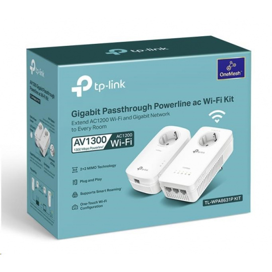 TP-Link TL-WPA8631PKIT OneMesh/EasyMesh WiFi5 průchozí powerline set (AC1200,AV1300,2,4GHz/5GHz,3xGbELAN)