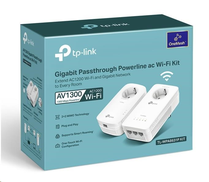.TP-Link TL-WPA8631PKIT OneMesh/EasyMesh WiFi5 průchozí powerline set (AC1200,AV1300,2,4GHz/5GHz,3xGbELAN)
