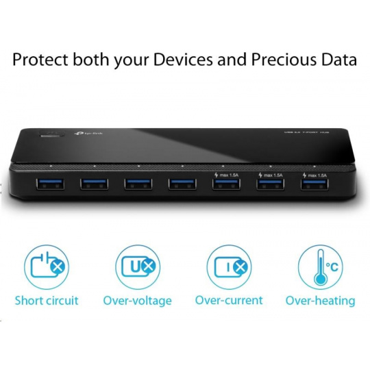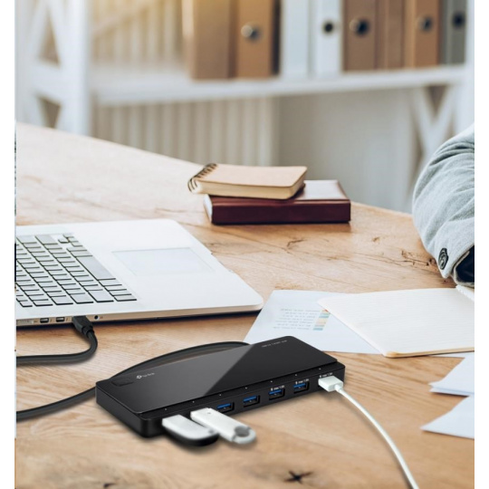USB rozbočovač UH700 je skvelou voľbou na rozšírenie USB portov počítača na prenos dát, keď potrebujete súčasne pripojiť USB disk, USB myš, tlačiareň alebo iné zariadenia. Port USB 3.0 umožňuje prenosovú rýchlosť až 5 Gbit/s, 10-krát rýchlejšiu než USB 2.0.