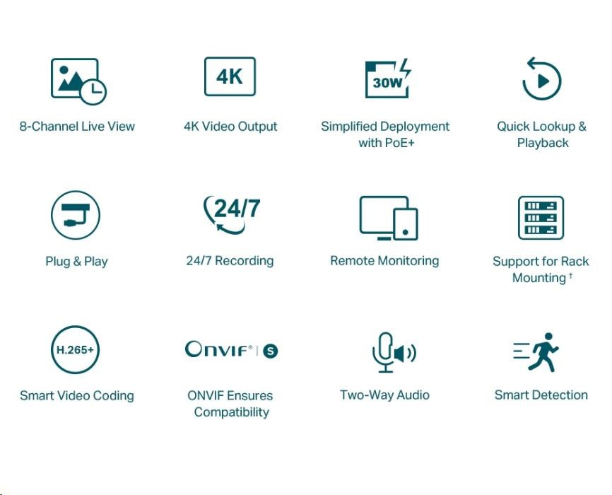 - Plug & Play: Umožňuje automatické pridávanie nových a nepoužitých IP kamier VIGI do nového NVR a okamžitú aktiváciu, takže inštalácia je rýchlejšia ako kedykoľvek predtým.