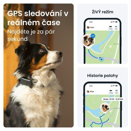 Zabezpečte svojmu psovi bezpečie a zdravie s Tractive DOG 6: výkonným univerzálnym GPS obojkom pre psov, ktorý vám v reálnom čase ukáže, kde presne pes je, sleduje jeho spánok a aktivitu a ponúka radu ďalších funkcií. GPS lokátor pre psov má v Českej republike a v ďalších viac ako 175 krajinách neobmedzený dosah vďaka integrovanému SIM karte, ktorá sa pripojí k akejkoľvek partnerskej sieti (je potrebná možnosť pripojenia k mobilnej sieti). Vyberte si predplatné, ktoré pokrýva náklady. Môžete si zvoliť predplatné na mesiac, 1, 2 alebo 5 rokov už od 90 Kč / mesiac*.*Cena s predplatným na 2 roky a jednorazovou platbou vopred. Ceny sa môžu zmeniť. Najnovšie informácie nájdete na adrese tractive.com/plans.