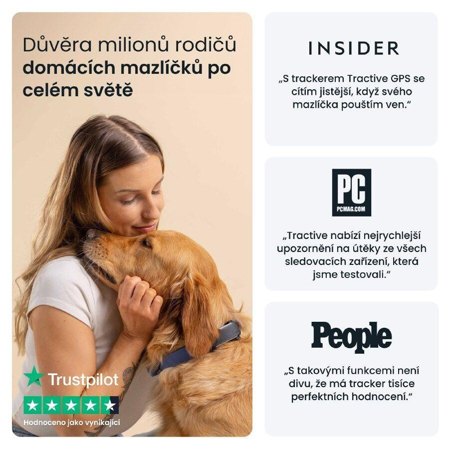 GPS tracker Tractive vás informuje, koľko sa váš pes pohybuje, spí a štekať. Môžete nastaviť ciele pohybu, kontrolovať Skóre kondície a porovnávať svojho psa s inými plemenami.Odolná konštrukcia