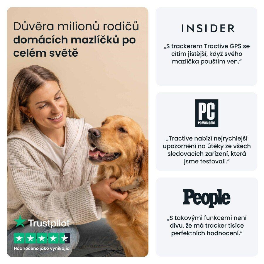 GPS tracker Tractive vás informuje, ako veľmi sa váš pes pohybuje, spí a šteka. Môžete nastaviť ciele pohybu, kontrolovať Skóre kondície a porovnávať svojho psa s inými plemenami.Odolná konštrukcia