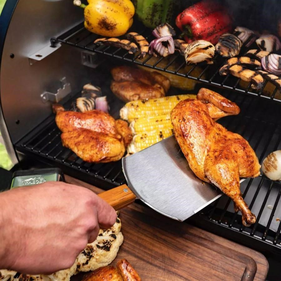 Keď potrebujete preniesť veľký kus hovädzieho hrudy alebo celú stranu lososa, potrebujete špachtľu Traeger XXL BBQ Spatula. Vďaka veľkému povrchu a robustnej rukoväti sa na ňu môžete spoľahnúť pri prenose aj tých najväčších kusov mäsa a rýb.