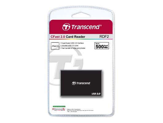 CFast 2 od spoločnosti Transcend.0 Čítačka kariet RDF2 je určená výhradne pre profesionálnych kameramanov, ktorí sa usilujú o extrémnu účinnosť prenosu s pamäťovými kartami CFast. S rozhraním SuperSpeed USB 3.0, RDF2 vykazuje úžasnú prenosovú rýchlosť až 500 MB za sekundu*, čo je 10-krát rýchlejšie ako USB 2.0 rozhranie. Vďaka tejto čítačke kariet môžu profesionáli ušetriť značné množstvo času pri prenose zvukových súborov s vysokým rozlíšením a sústrediť sa na svoju prácu. Kompaktný a prenosný dizajn kamery RDF2 umožňuje používateľom ľahko ju prenášať zo štúdia na miesto natáčania bez toho, aby ich zaťažovala.