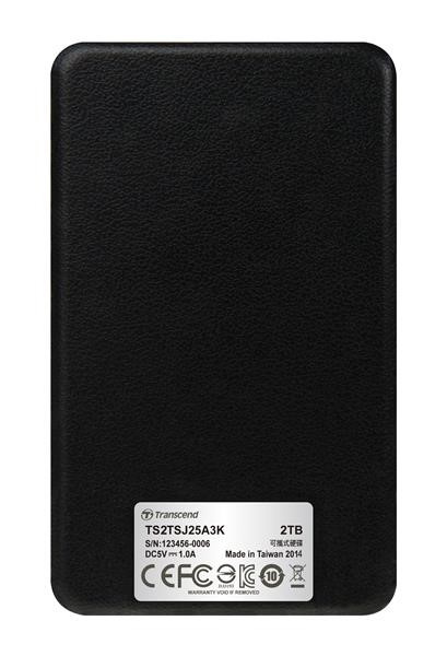 Externý pevný disk TRANSCEND 2,5" USB 3.1 StoreJet 25A3, 2 TB, čierny (nárazuvzdorný, 256-bitový AES)