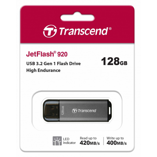 Predstavujeme vám vysoko odolný a výkonný USB flash disk JetFlash 920 od spoločnosti Transcend, ktorý nie je obyčajný. Vďaka senzačným rýchlostiam čítania až 420 MB/s a zápisu až 400 MB/s poskytuje JetFlash 920 špičkový výkon v elegantnom a prenosnom dizajne. Jeho hliníkové kovové puzdro ochráni vaše údaje, nech ste kdekoľvek.