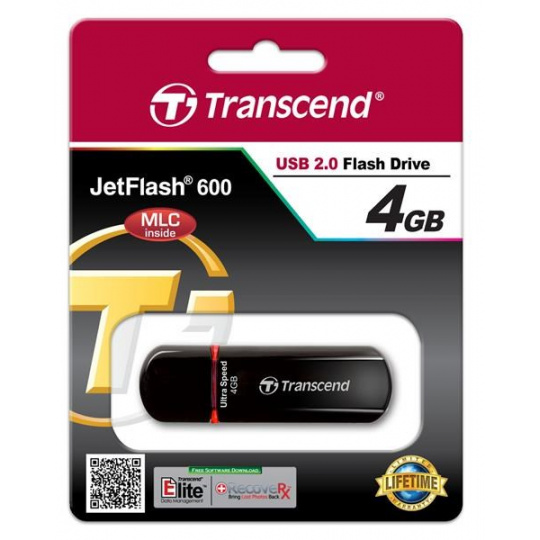 TRANSCEND Flash disk 4GB JetFlash®600, USB 2.0 (R:20/W:10 MB/s) čierna/červená