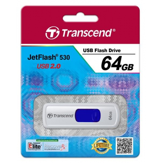 TRANSCEND Flash disk 64GB JetFlash®530, USB 2.0 (R:16/W:6 MB/s) biela/modrá kráľovská
