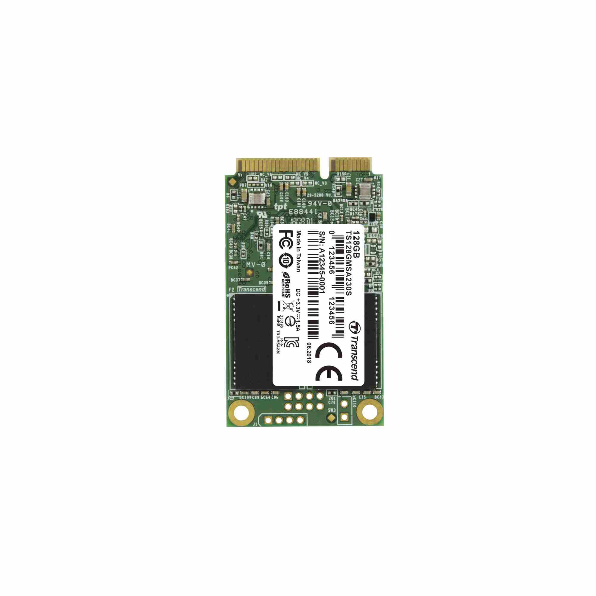 TRANSCEND Industrial SSD MSA230S 128GB, mSATA, SATA III, 3D TLC