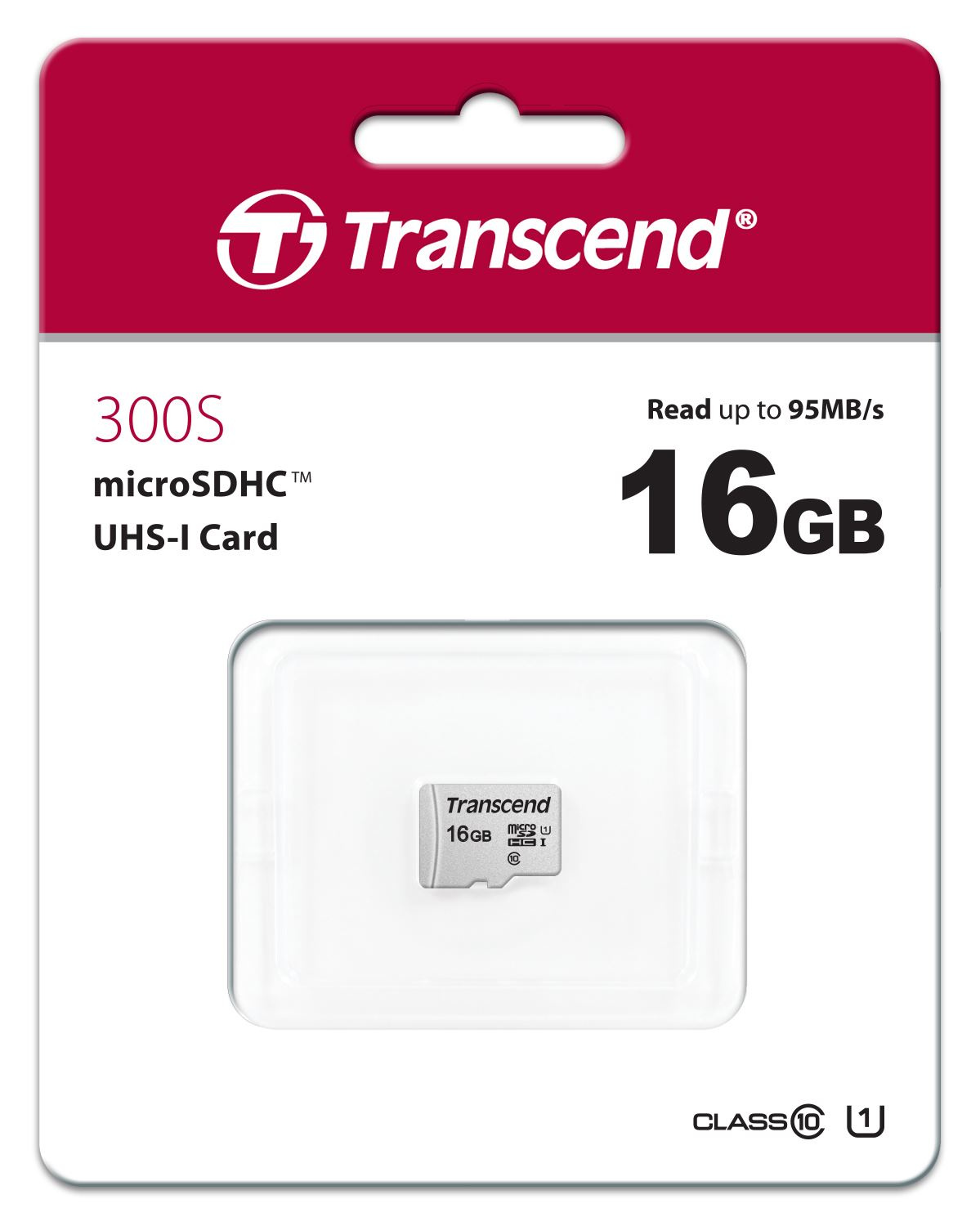 Karta TRANSCEND MicroSDHC 16GB 300S, UHS-I U1 + adaptér