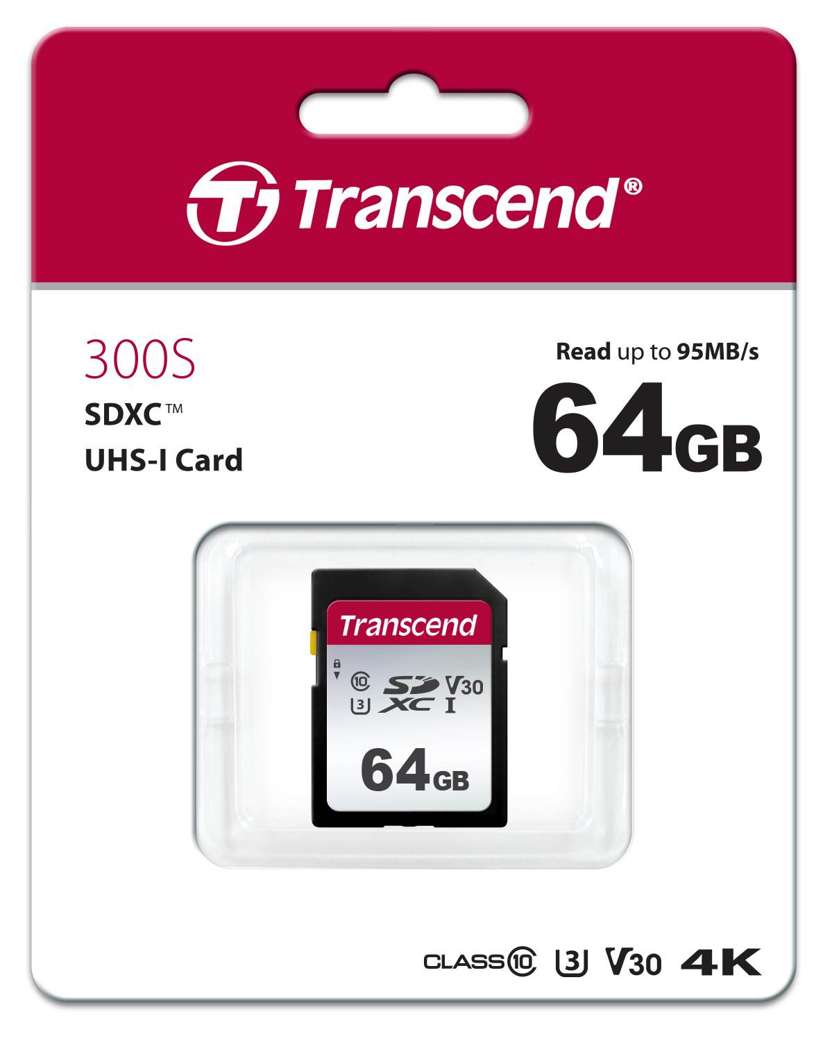 Karta TRANSCEND SDXC 64GB 300S, UHS-I U3 V10 (R:100/W:25 MB/s)