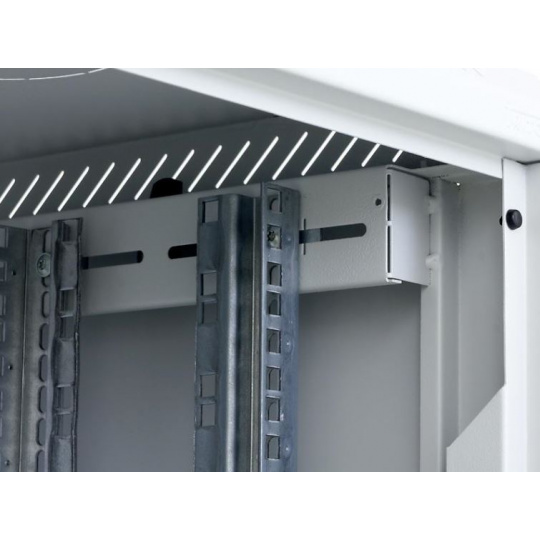 Dva páry 19" vertikálnych koľajníc sú plynule nastaviteľné v ľubovoľnej hĺbke stojana. To uľahčuje inštaláciu zariadenia a usporiadanie pripojovacích káblov.