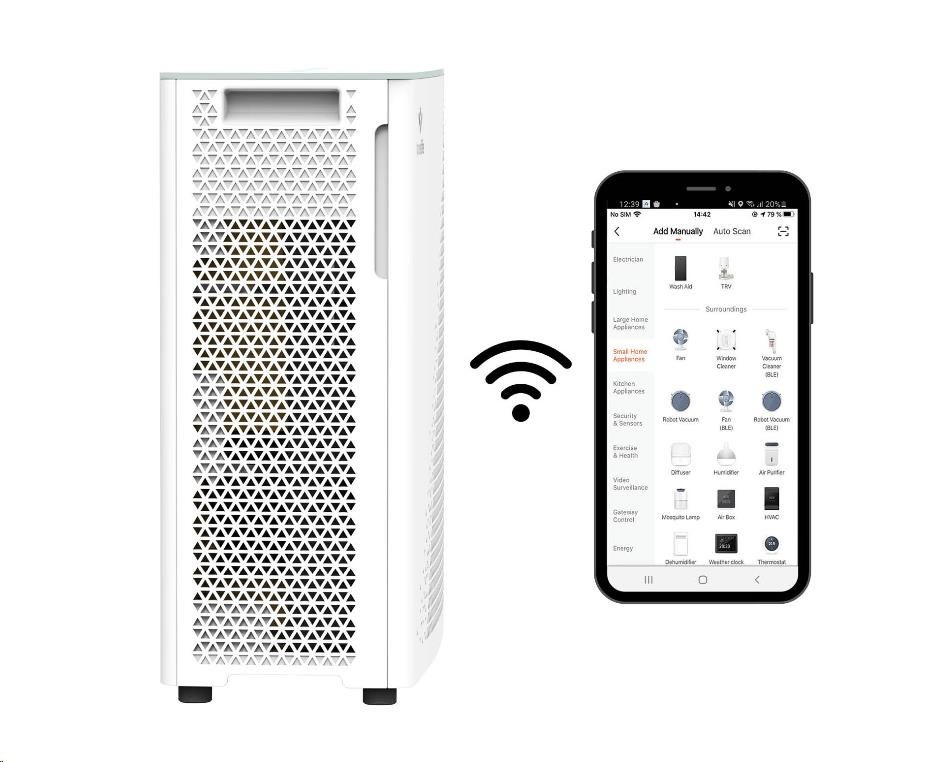 Čističku je možné pripojiť na WiFi sieť a ovládať prostredníctvom mobilnej aplikácie.