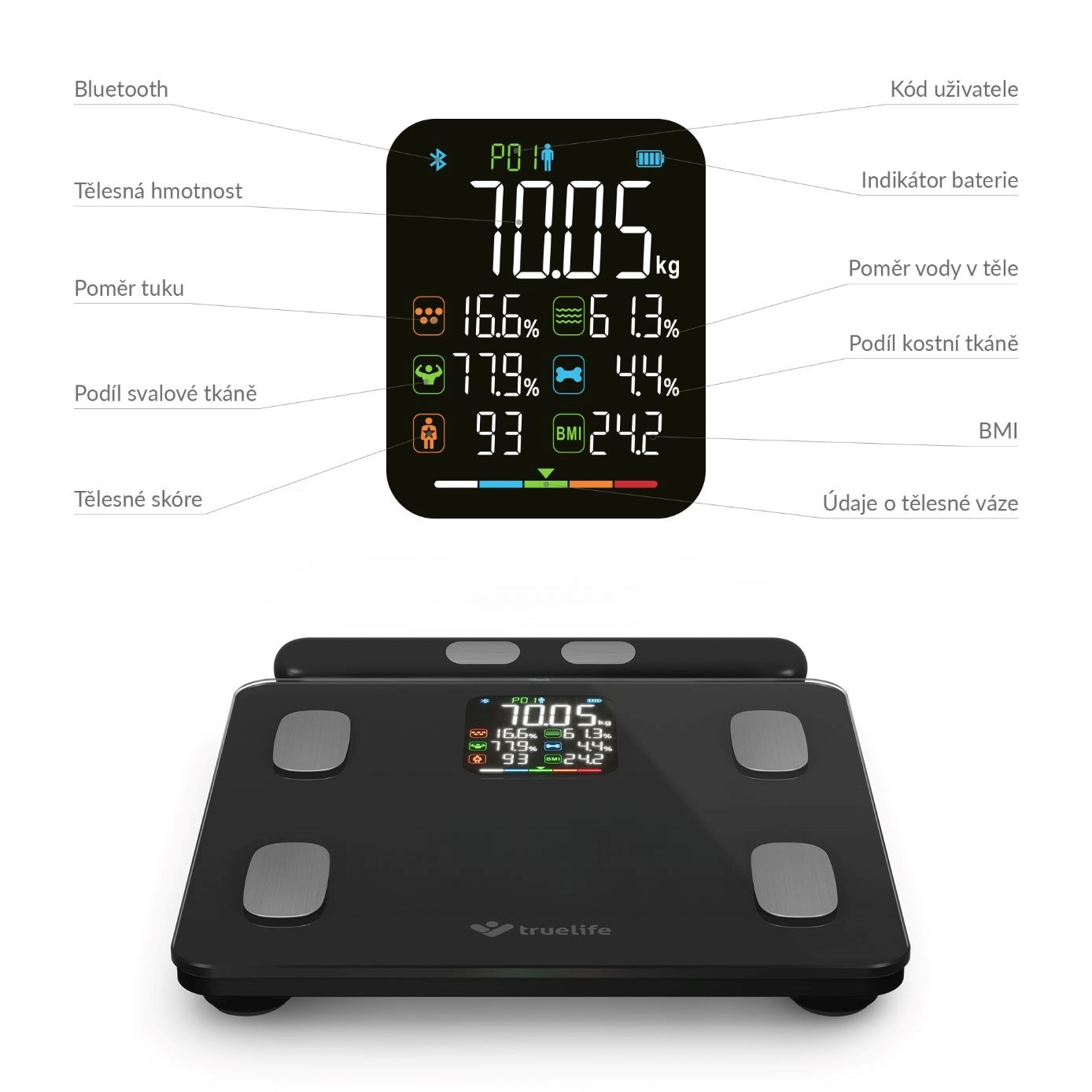 TrueLife FitScale W8 BT Black - osobní diagnostická bluetooth váha