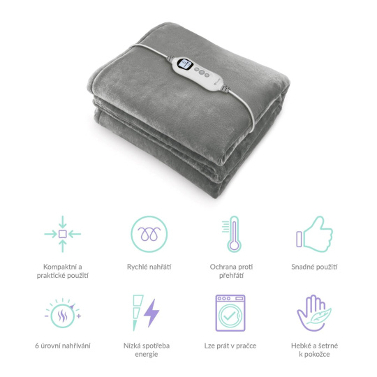 S pomocou funkcie rýchleho a rovnomerného zohrievania sa deka začne zohrievať ihneď. Na požadovanú teplotu je zahrievajúca sa do pár minút.