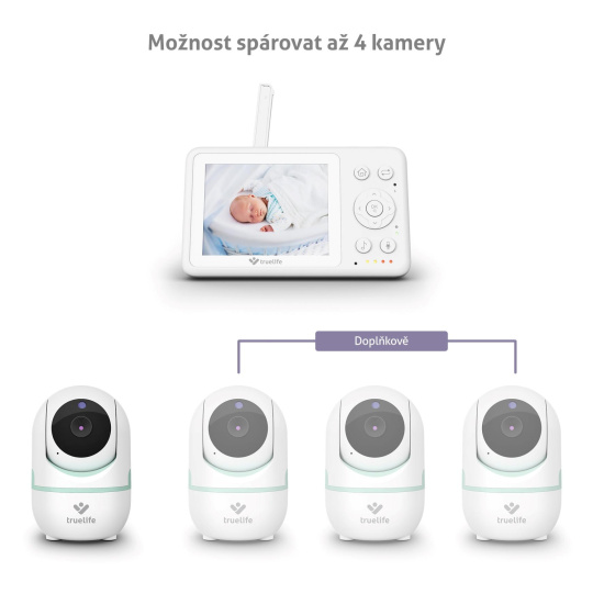 Pre pokrytie viacerých priestorov a maximálny prehľad je možné dokúpiť až 4 kamery a napárovať ich na rodičovskú jednotku.