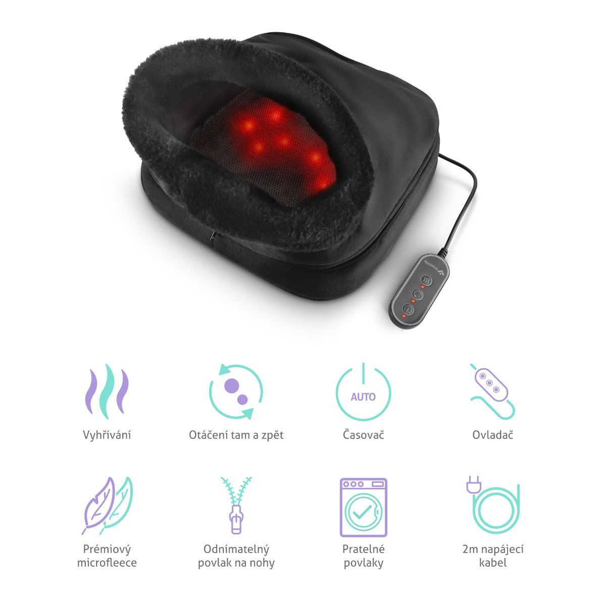 Nosia nás každý deň a my im venujeme spravidla veľmi malú pozornosť, pokiaľ nezačnú bolieť. Reč je o našich nohách. TrueLife RelaxFeet F3 predstavuje riešenie, ktoré uvoľní chodidlá, prsty a spodné päty, čím napomáha od problémov so studenými nohami či ťažkosťami spojenými s dlhodobým státím. Dve rotujúce masážne hlavice s ôsmimi nahrievacími masážnymi uzlami zaistia príjemnú masáž napomáhajúcu úľave od chronických bolestí, stresu a ďalších neduhov. Rotácia hlavíc je možné zvoliť jedným alebo druhým smerom, pričom masáž trvá 15 minút. Po ich uplynutí sa prístroj automaticky vypne vďaka časovaču. Celkový komfort masáže zlepší možnosť vyhrievania, ktorý sa však dá využiť aj samostatne bez masírovania. Vďaka integrovanému zipsu je možné odňať vrchnú časť a prístroj použiť aj na masáž chrbta. Obliečka je vyrobená z príjemného microfleecu a je možné ju vyprať v práčke.