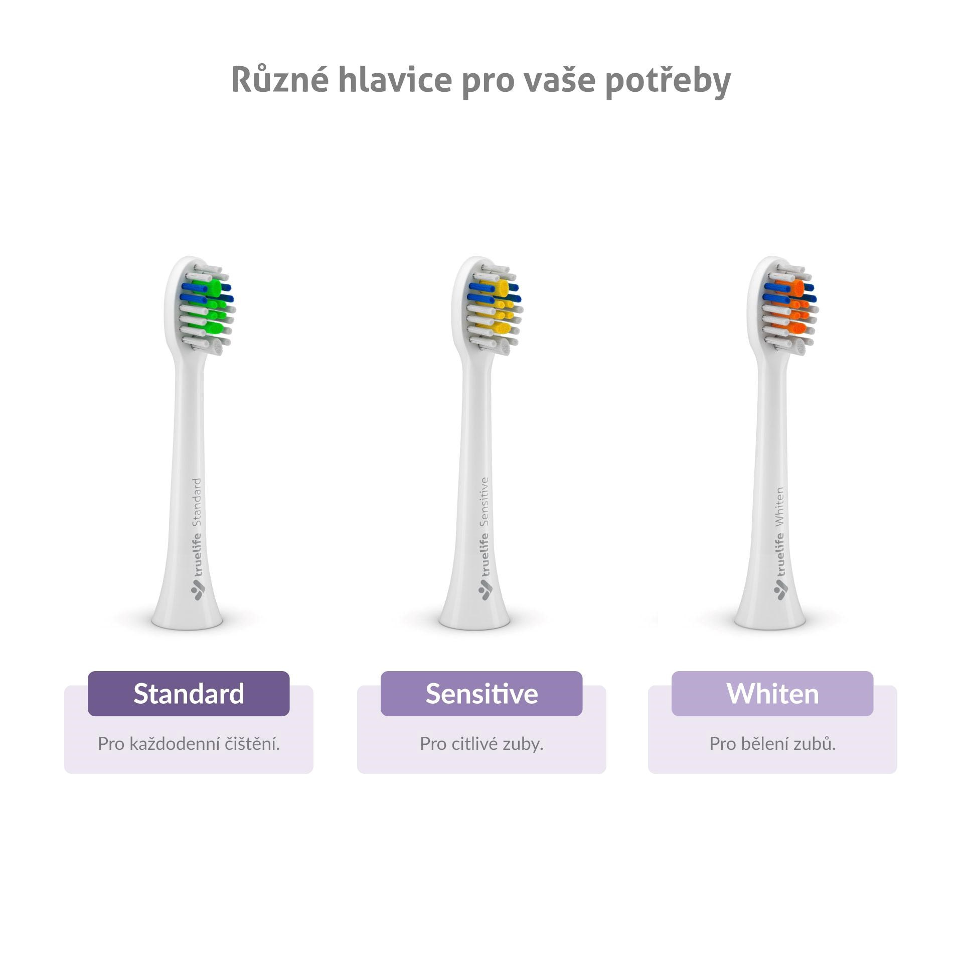 V každom balení SonicBrush Compact Duo nájdete celkom 6 náhradných hlavíc rôznych typov – dve hlavice Standard pre bežné čistenie, dve hlavice Sensitive pre citlivejšie zuby a dve hlavice Whiten pre bieliaci efekt. Hlavice vydržia až 3 mesiace používania, potom sa začnú lámuť, strácajú účinnosť a navyše sa na nich hromadia baktérie. Našťastie sú hlavice opatrené modrými štetinkami, ktoré po 3 mesiacoch vyblednú a vy tak viete, že je čas hlavicu vymeniť.