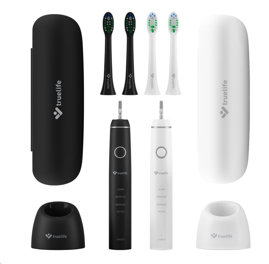 Chcete mať zdravé zuby a ďasná? Nerobiť si stres pri každej návšteve zubára? Na kartáček TrueLife SonicBrush Compact s modernou sonickou technológiou sa môžete spoľahnúť vy, aj váš partner. V sade Truelife SonicBrush Compact Duo totiž nájdete dve sonické kefky (v čiernej a bielej varianto), štyri zubné hlavice, dve cestovné púzdra a dve dobíjacie základne. Doprajte si aj vy exkluzívnu zubnú starostlivosť, vďaka ktorej získate žiarivý úsmev a nedáte šancu škodlivým baktériám. Hlava kefky kmitá vysokou frekvenciou a každým pohybom odstráni maximum zubného plaku. Môžete vyberať zo 4 režimov čistenia. Batéria kefky vydrží až 30 dní.