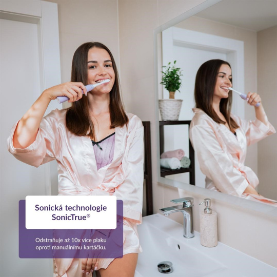 Užívajte si každodenný rituál ústnej hygieny v novej, elegantnej farebnej verzii Lavender. Rovnako ako ostatné modely radu SonicBrush Compact, aj táto verzia využíva sonickú technológiu SonicTrue® pre dôkladné a šetrné čištenie zubov. Osvezujúci levanduľový odtieň dodá vašej kúpeľni štýl a spríjemní vašu rutinu. Kefka ponúkne až 70 000 pohybov za minútu, štyri režimy čistenia a výdrž batérie až 30 dní. Vďaka kompaktnejšiemu dizajnu a cestovnému puzdru sa stane vaším každodenným spoločníkom doma aj na cestách. Súčasťou balenia sú aj tri náhradné hlavice (Sensitive, Standard, Whiten) a cestovné puzdro.