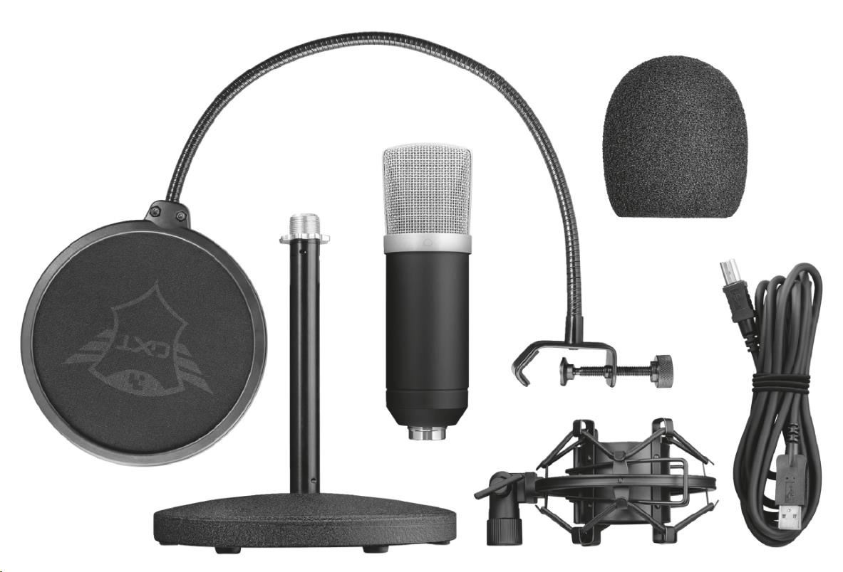 | Obsah balenia | Letecký kufor Mikrofón Kábel USB Pop-filtre Nárazový držiak Stolný stojan Používateľská príručka |