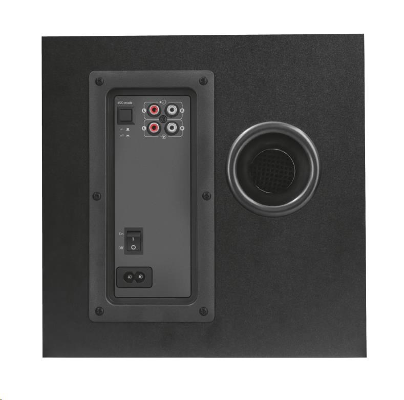 | Ovládacie prvky | Tlačidlo ECO, stlmenie zvuku, ovládanie hlasitosti, LED DIÓDY, basy |
