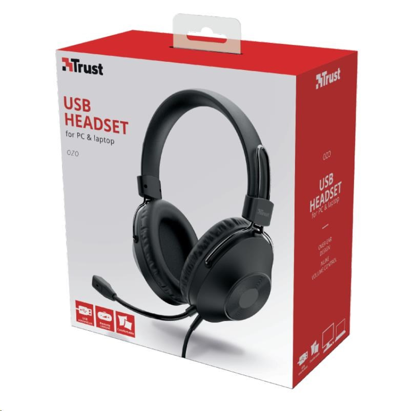 TRUST sluchátka s mikrofonem Ozo Over-Ear USB Headset