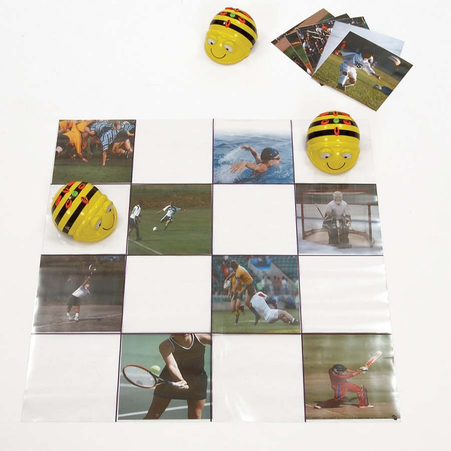 Podložka na hru s Bee-Bot včelkou. Je priehľadná a má kapsy, do ktorých sa môžu vkladať rôzne karty. Deti si tak môžu vymyslieť vlastné pravidlá. Je vyrobená z PVC a môže sa používať aj v exteriéri. Rozmer kapsy: 15 x 15 cm Pre deti od 3+ rokov.