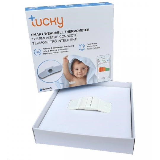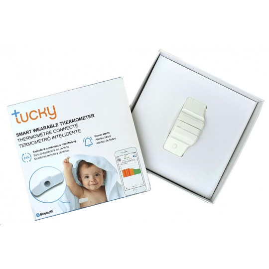 TUCKY – inteligentný teplomer a monitor polohy prináša riešenie tejto situácie. Certifikovaný pre lekárske použitie, jednoducho ho nalepte pod pravú ruku vášho malého pacienta a TUCKY mu každú minútu presne zmeria teplotu a odošle meranie do vášho zariadenia so systémom iOS/Android. Teplotu môžete neustále sledovať, alebo sa môžete spoľahnúť naautomatické upozornenie až vtedy, keď teplota dosiahne určitú hodnotu , a okamžite podať lieky na zabitie horúčky. TUCKY ušetrí vaše dieťa pred nepríjemným utrpením s horúčkou a dodá vám väčší pokoj.