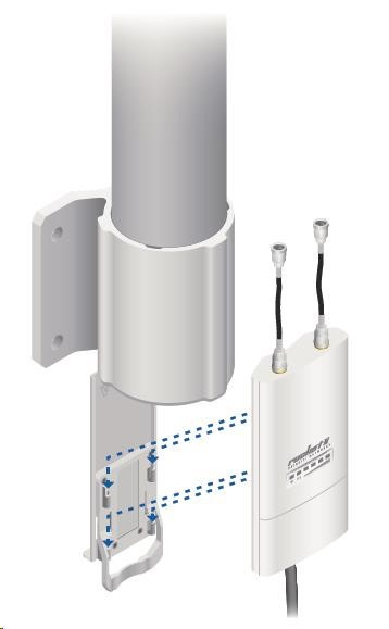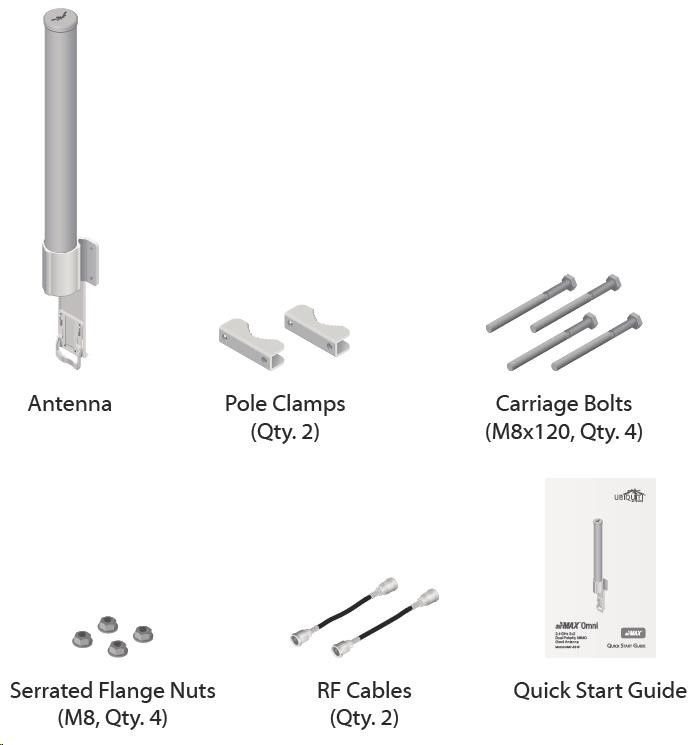 je to robustné 10dbi všesmerové anténne riešenie pre prístupové body pracujúce v pásme 2.4GHz a pomocou 802.11n v kombinácii s technológiou MIMO. Anténa má dva konektory RSMA typu žena. Súčasťou dodávky sú dva vodotesné pigtaily RSMA na pripojenie k jednotke Rocket M2, držiak pre túto jednotku a montážna súprava na stožiar, pozri. obr.