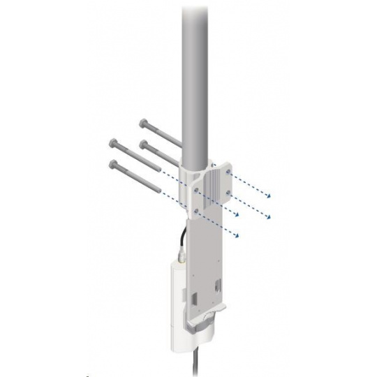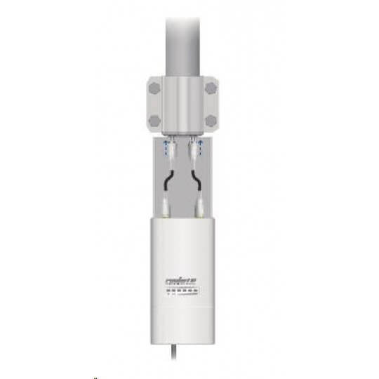 ide o robustné 13dbi všesmerové anténne riešenie pre prístupové body pracujúce v pásme 5 GHz a využívajúce štandard 802.11n v kombinácii s technológiou MIMO. Anténa má dva konektory RSMA typu žena. Súčasťou dodávky sú dva vodotesné pigtaily RSMA na pripojenie k jednotke Rocket M5, držiak pre túto jednotku a montážna súprava na stožiar, pozri. obr.