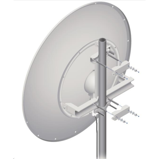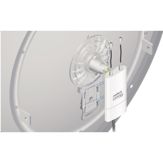 dvojpolarizačná 5GHz anténa so ziskom 34 dBi vhodná pre jednotku Rocket M5. Využíva horizontálnu aj vertikálnu polarizáciu, čím nahrádza dve samostatné antény a šetrí náklady na prenájom miesta pre anténu. Anténa je vhodná na jednoduché vytváranie spojení PtP. Dodáva sa aj s vodotesným príslušenstvom na pripojenie k jednotke Rocket M5.