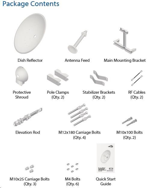 dvojpolarizačná 5GHz anténa so ziskom 34 dBi vhodná pre jednotku Rocket M5. Využíva horizontálnu aj vertikálnu polarizáciu, čím nahrádza dve samostatné antény a šetrí náklady na prenájom miesta pre anténu. Anténa je vhodná na jednoduché vytváranie spojení PtP. Dodáva sa aj s vodotesným príslušenstvom na pripojenie k jednotke Rocket M5.