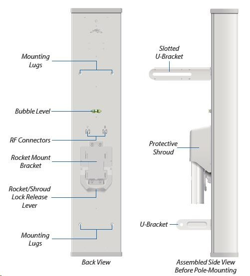 dvojpolarizačná sektorová anténa 15 dBi vhodná pre Rocket M2 (2x2 MIMO). Uhol vyžarovania 120°. Využíva horizontálnu aj vertikálnu polarizáciu a nahrádza dve samostatné antény, čím ľahko vytvára prístupový bod s vysokou priepustnosťou.