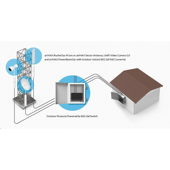 tento gigabitový konvertor možno použiť na napájanie prepínačov UBNT s aktívnym PoE podľa normy 802.3af (48 V). Prevodník komunikuje so spínačom podľa 802.3af a výstup je už klasický pasívny PoE, v tomto prípade 24V/0,5A. Môže sa používať so všetkými jednotkami Ubiquity (je kompatibilný aj s routerboardmi Mikrotik).